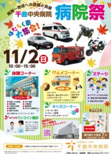 この度、15年ぶりに病院祭を開催することになりました。 テーマは「 飛翔 〜地域への感謝と貢献〜 」です。 皆さまのご来場をお待ちしております。 千曲中央病院 2025病院祭 『 飛翔 〜地域への感謝と貢献〜 』 開催日 2025年11月2日(日) 10:00〜15:00